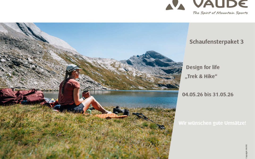 • Nachbestellungen für Bestandsartikel bis 13.04.2026 per Mail an: schaufensterpakete.vaude.store@vaude.com